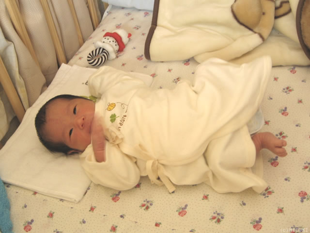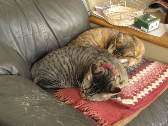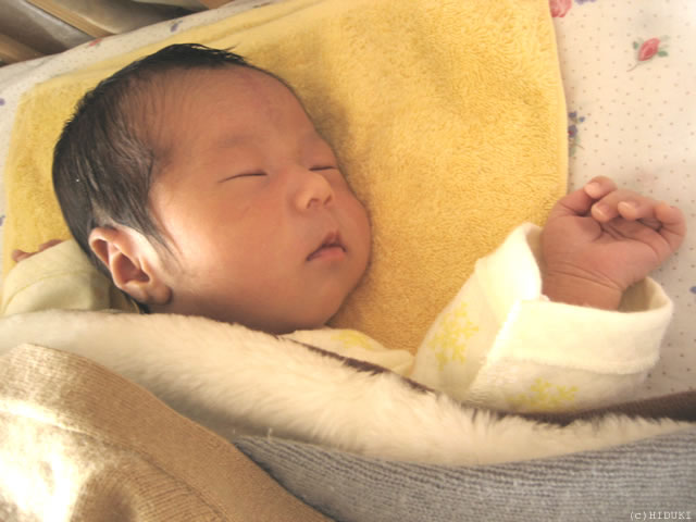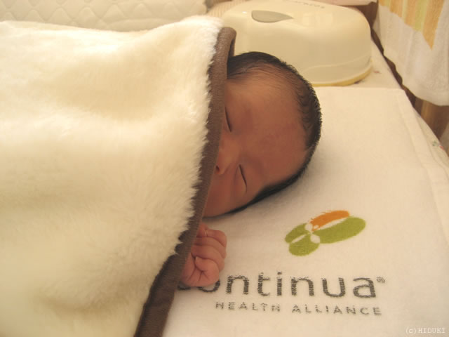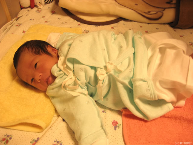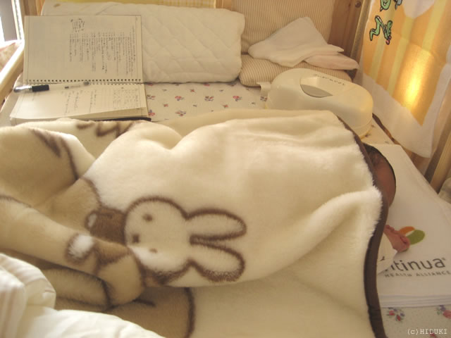 手ぬぐいタオルが枕代わりです。 |