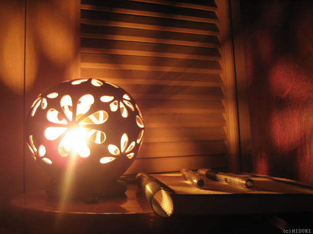 寝ながら笑う。 昼のまぶしい日差しの下でも、夜の明るい室内灯の下にいてもすやすや気持ちよく眠るので、部屋に誰もいないとき真っ暗にしちゃうのは可哀想な気がして、そんなとき大活躍の植物ランプ。 |