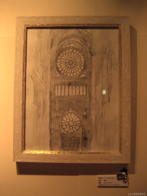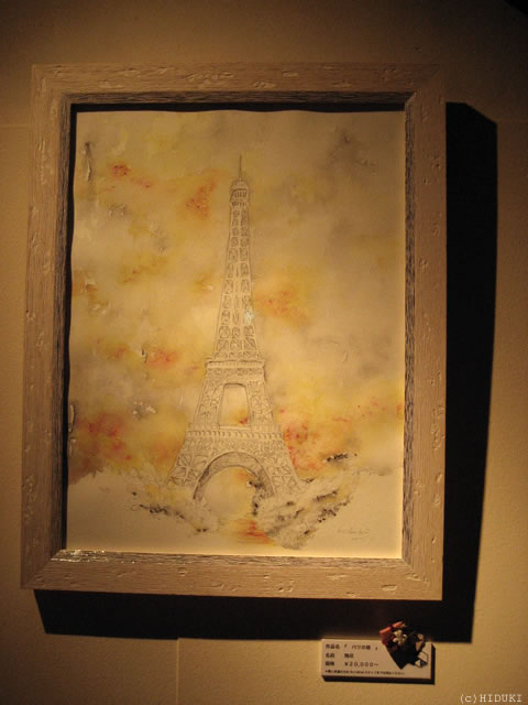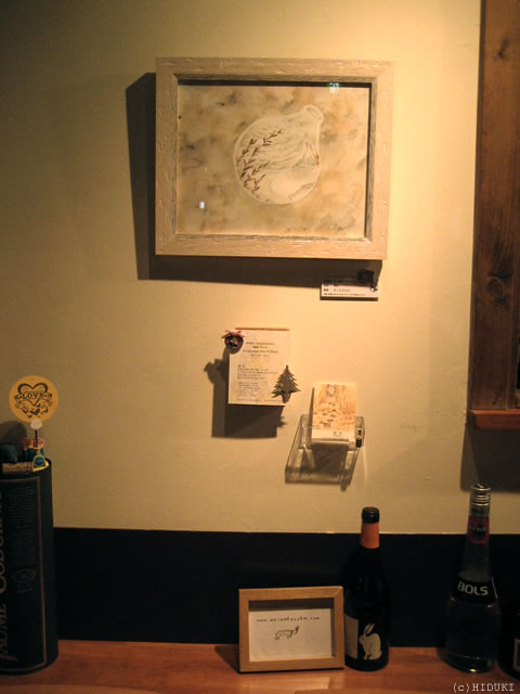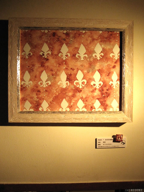 店内はムーディなオレンジの照明だったので、写真だと色が変ですが... 展示作品はこんな感じでした。